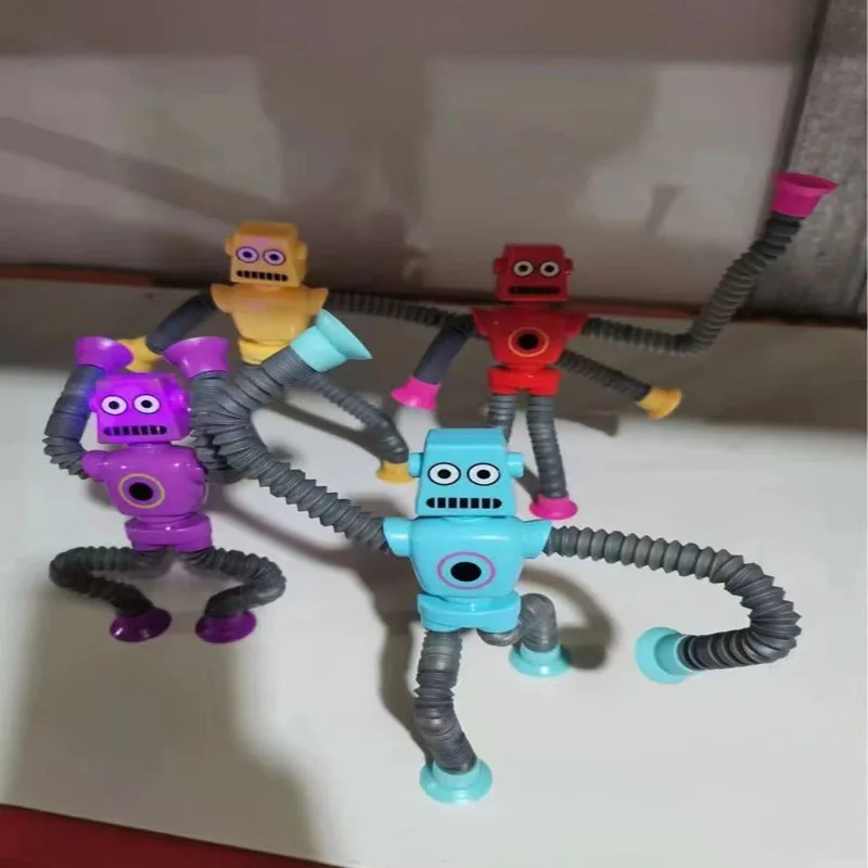 4pcs Versatile Suction Cup Robot Telescopic Tube Cartoon Stretching Tube Puzzle Novel Decompression Toy Qiqu Treasure Box Toy