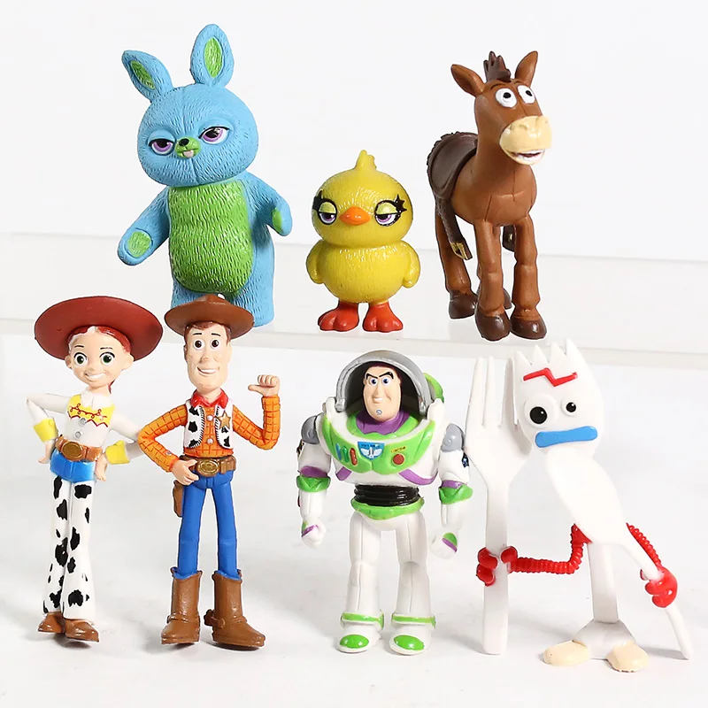 Disney 7pcs/set Toy Story 4 Woody Jessie Buzz Lightyear Bullseye Forky Ducky Bunny PVC Figures Kids Birthday Cake Decoration Toy