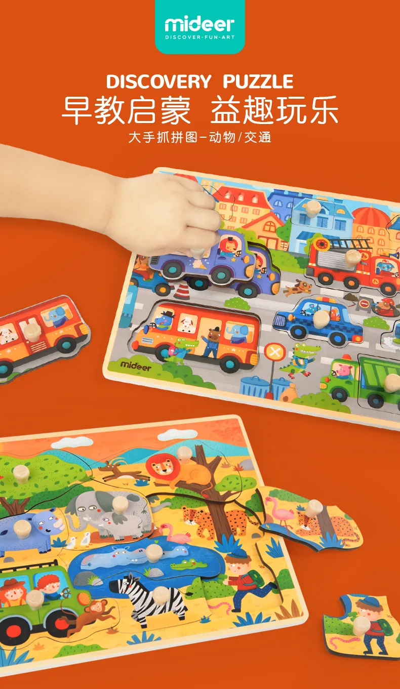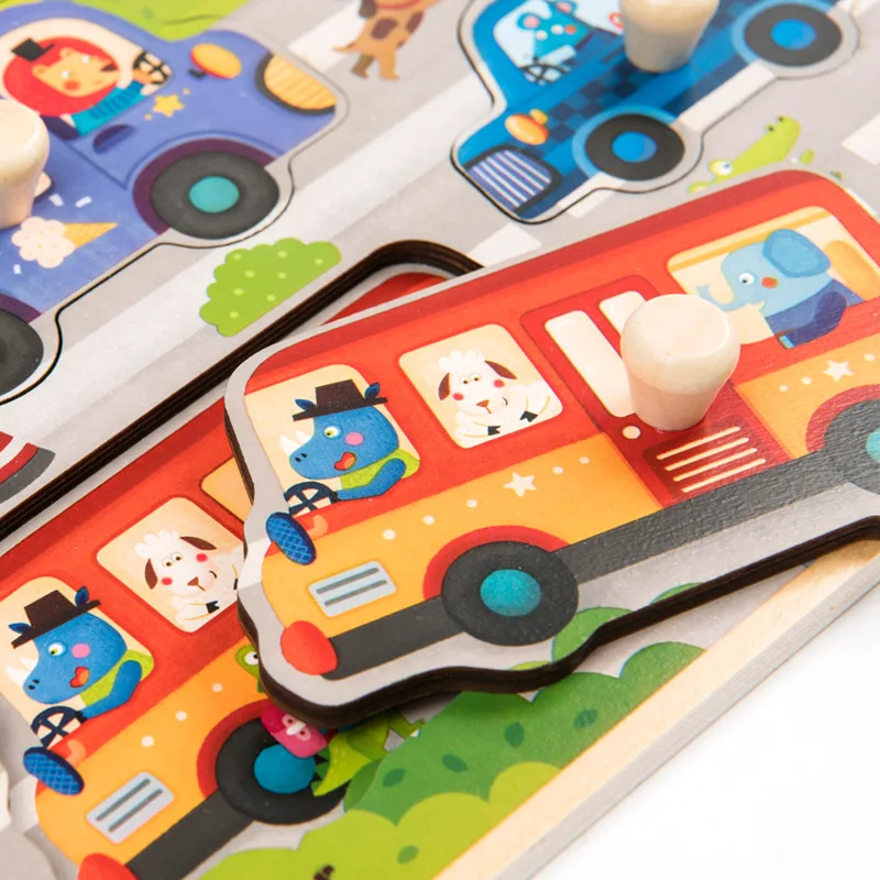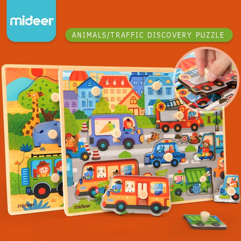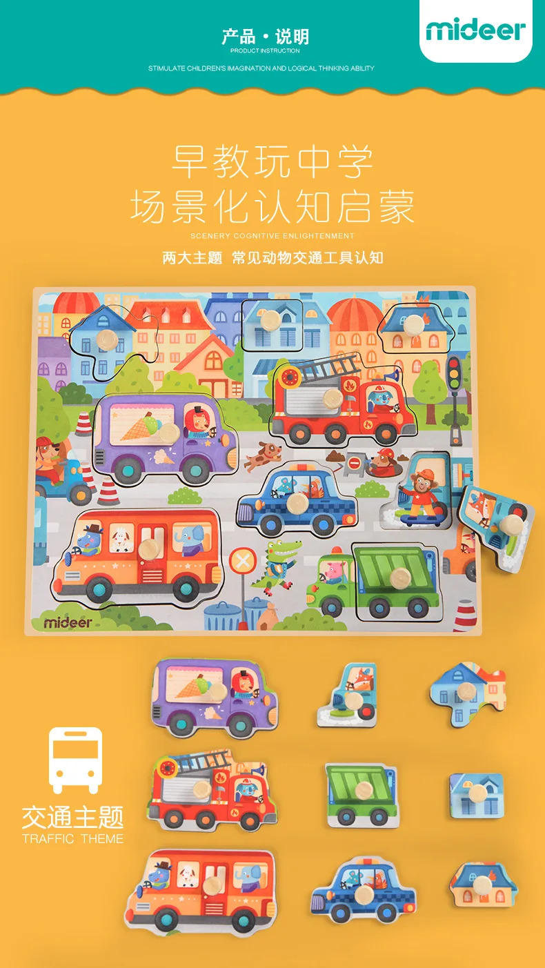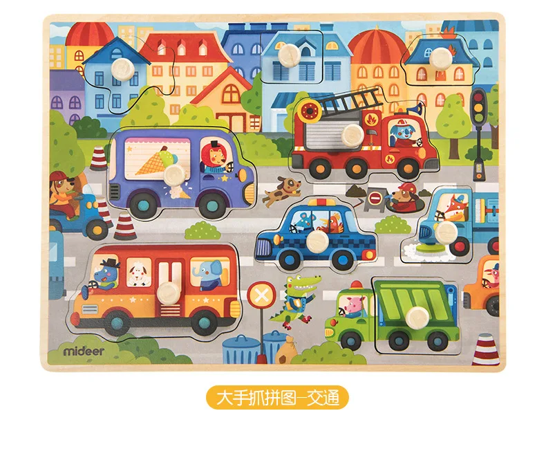 Mideer Children Wooen Bulk Hand Grab Puzzle Baby Traffic Animals Puzzle Kids Cognitive Enlightenment Early Learning Puzzle