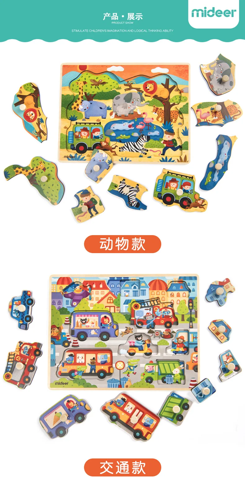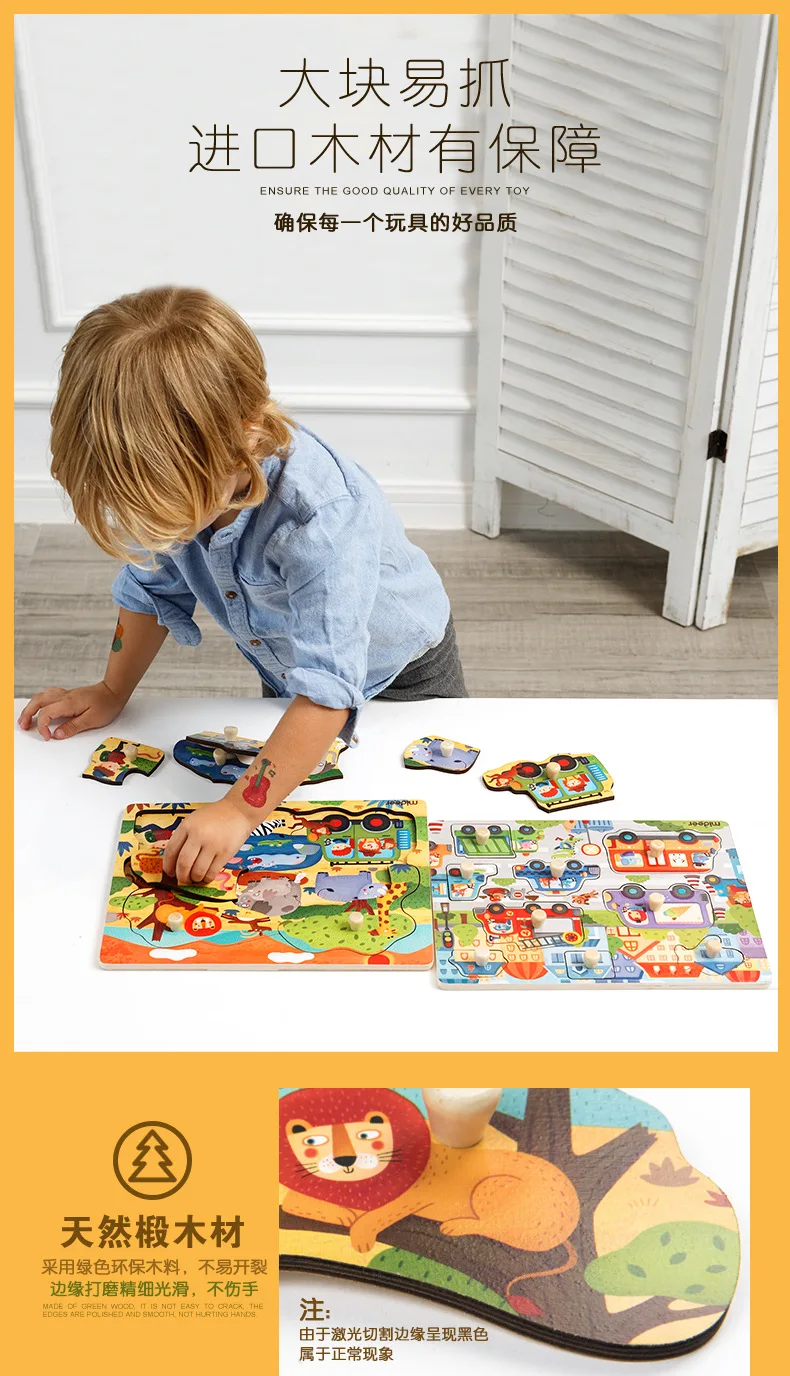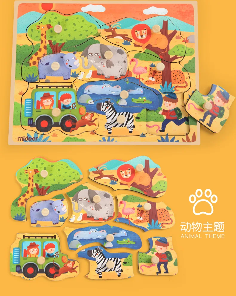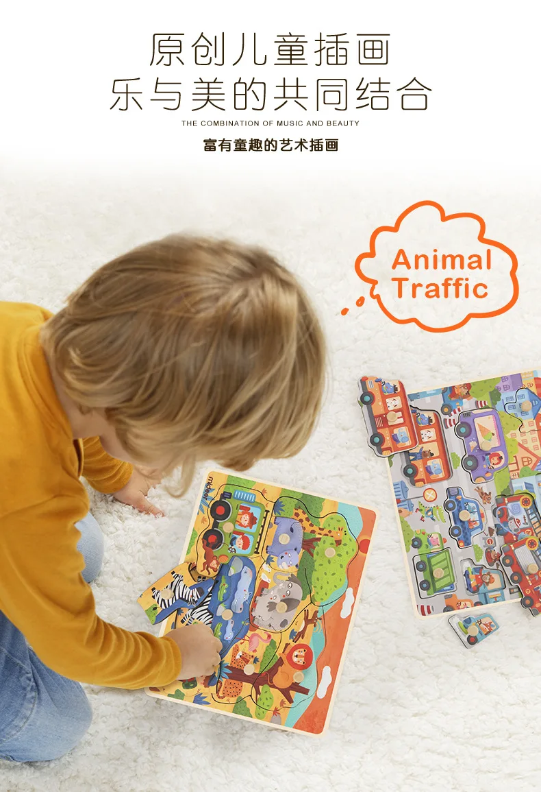 Mideer Children Wooen Bulk Hand Grab Puzzle Baby Traffic Animals Puzzle Kids Cognitive Enlightenment Early Learning Puzzle